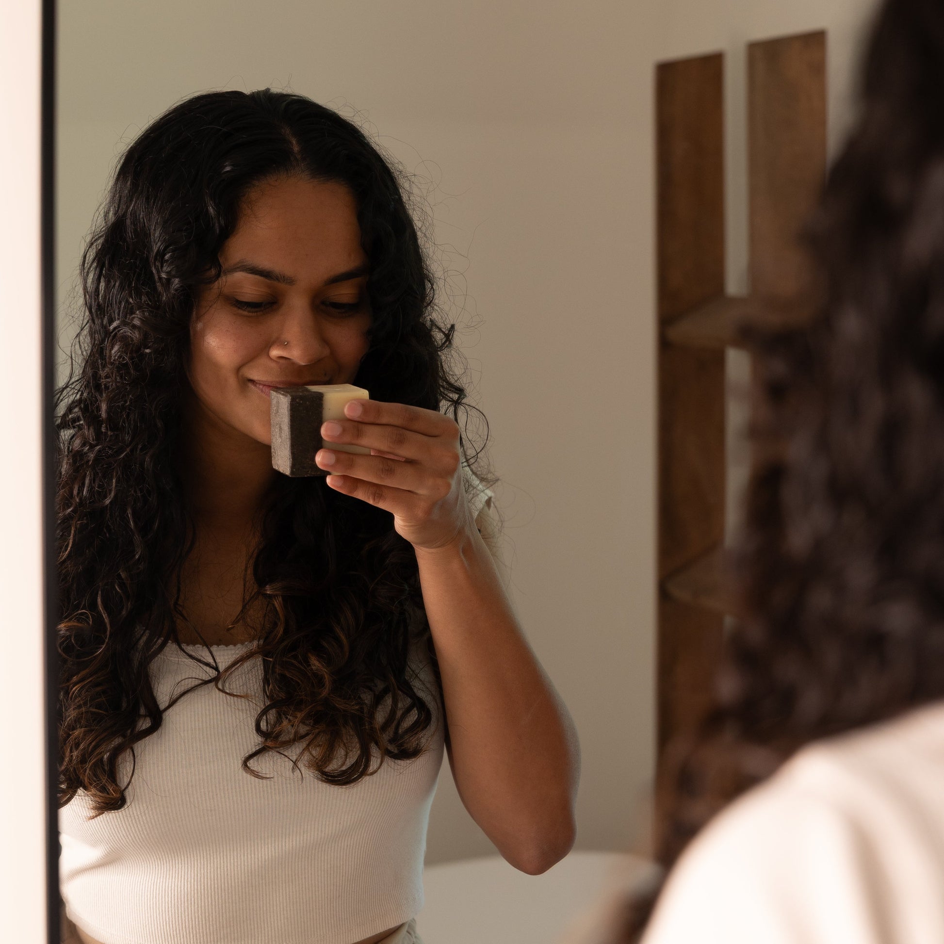 I'm enjoying this soap. I find the cube shape is easy to hold! I especially like how the bottom bit is gritty and is exfoliating, it's so much better than having one soap for exfoliating a couple times a week + a regular one! It smells great and I don't find the scent to be too strong.